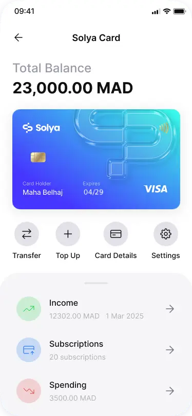 Solya is the smart Moroccan neobank that helps you budget, save, and grow - with Sol, your AI financial coach, by your side.